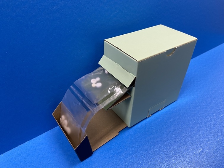 【使用方法】 一包化した薬包を切らずに束ねて、お薬束®に入れます。 後は、開閉部から一日分を引き出しセット完了。 使用するときは一日分を引き出し、スロープのエッジに沿って切れば服用ができます。 ハサミを使って、片手で操作も可能!自助具としてもお使いいただけます 組立不要!送られてきて、薬を充填すれば、すぐに使える♪ 【特徴】 ・約1ヶ月分を切らずに束ねて充填 ・置き場所も自由に選べる ・紙製なので手軽に始めやすいコストパフォーマンス 【仕様】 ・サイズ:(幅)7.5cm×(奥行)16.9cm×(高さ)12.3cm (組立時) ・材質 :紙 ・色 :ピンク・ブルー・グリーン ・入数 :3個 ・製造元:株式会社 サンポーウェルズ 【よくあるご質問】 Q:紙だとどれくらいの期間使用できますか? A:厚さは1.5mmあります。現在症例数は少ないですが、6ヶ月以上使用されています。 衛生面の観点から一定期間での交換をお勧めいたします。 滋賀県の「新商品生産等による新事業開拓者認定制度の認定」2020年4月15日認定 滋賀県HP |